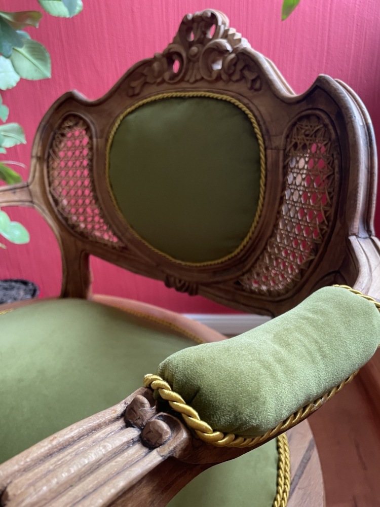 Ein Beispiel dafür, wie sich handwerkliche Polsterarbeit, hochwertige Materialien und ein behutsamer Umgang mit historischen Möbeln zu einem langlebigen Ergebnis verbinden.