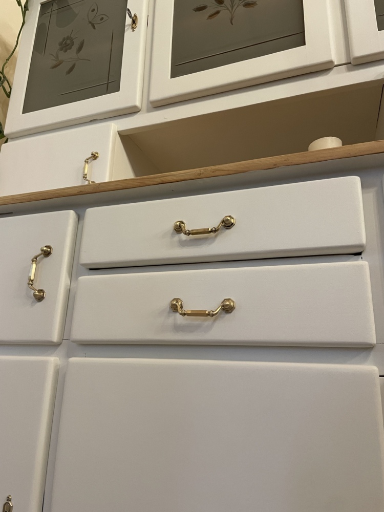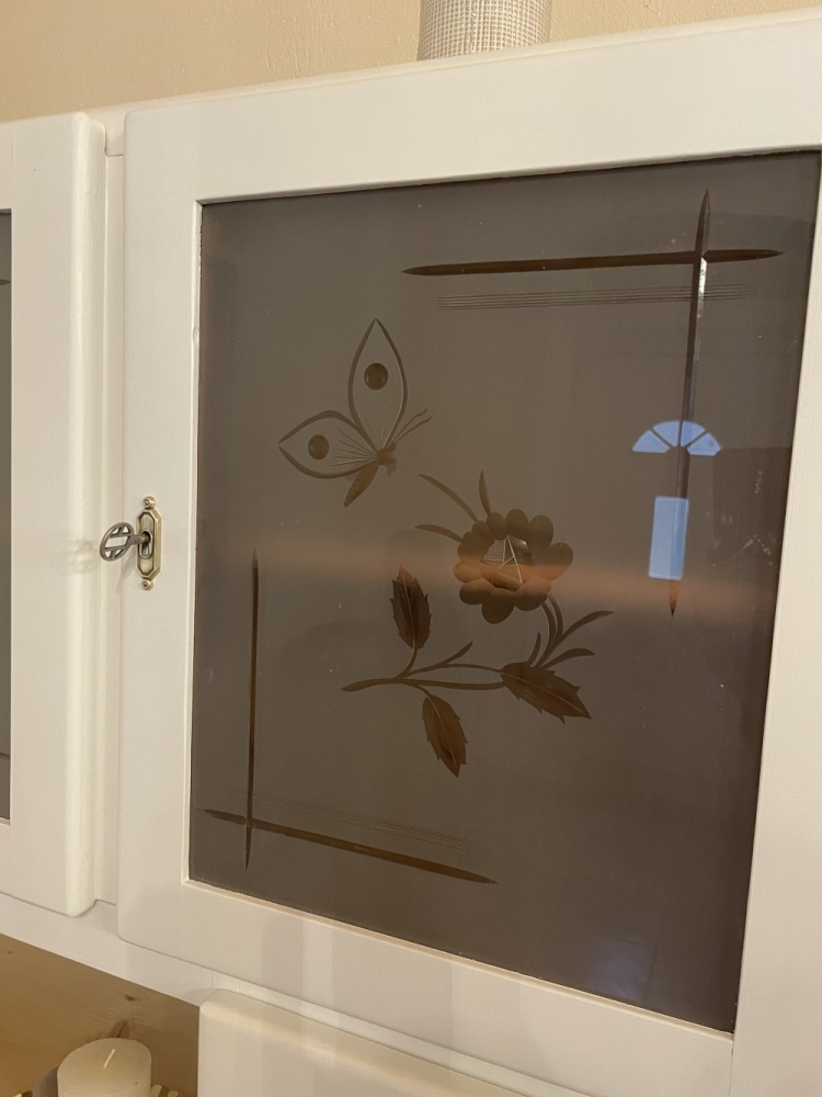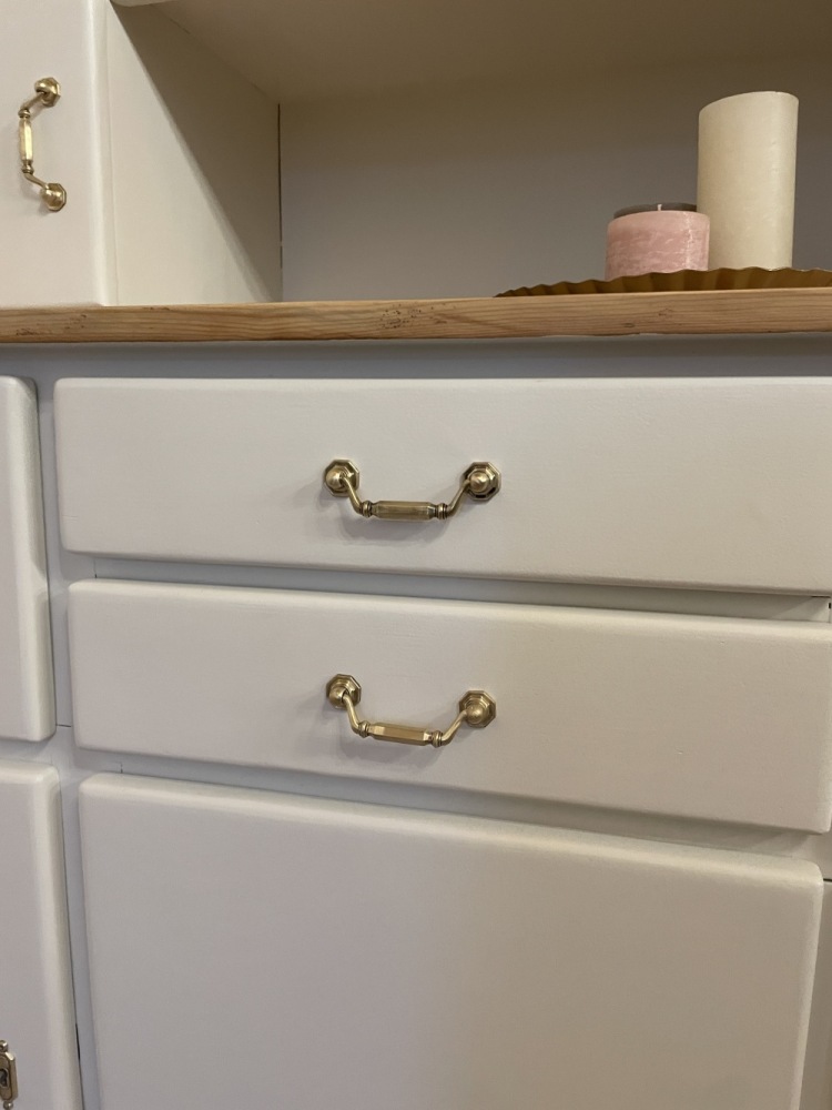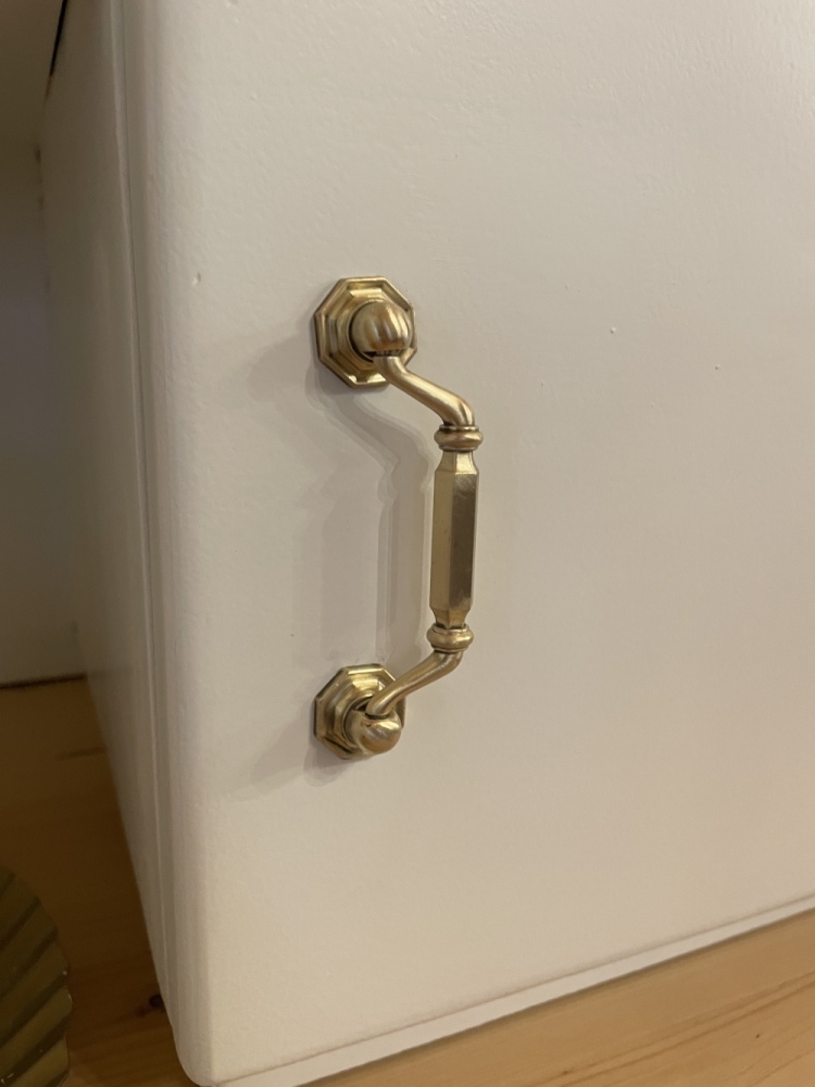 Der kleine Schrank hat eine große Verwandlung hinter sich – von einem dunklen Braun zu einem strahlenden Weiß! Jetzt sind auch die wunderschönen Details sichtbar!