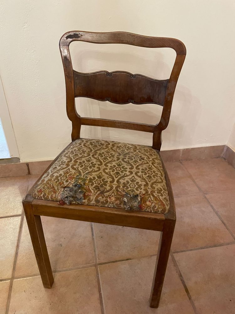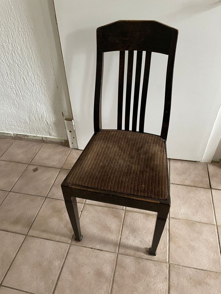 Dieser Stuhl hat bereits viel erlebt – und genau das macht seinen Charme aus.