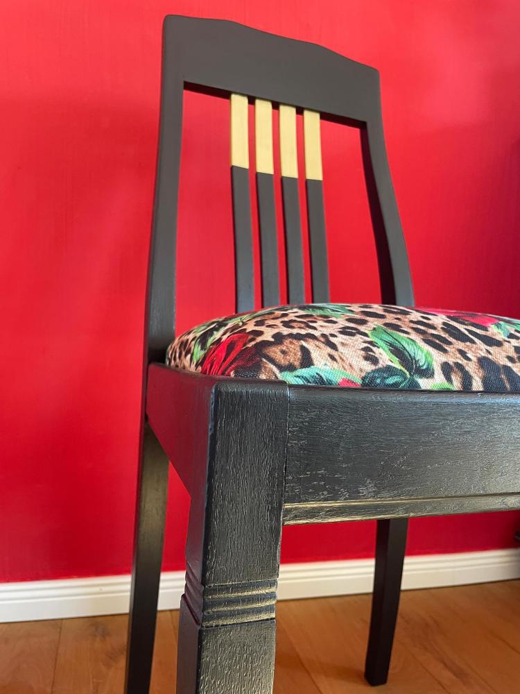 Dieser Stuhl wurde in meinem Möbelatelier vollständig restauriert und neu interpretiert.